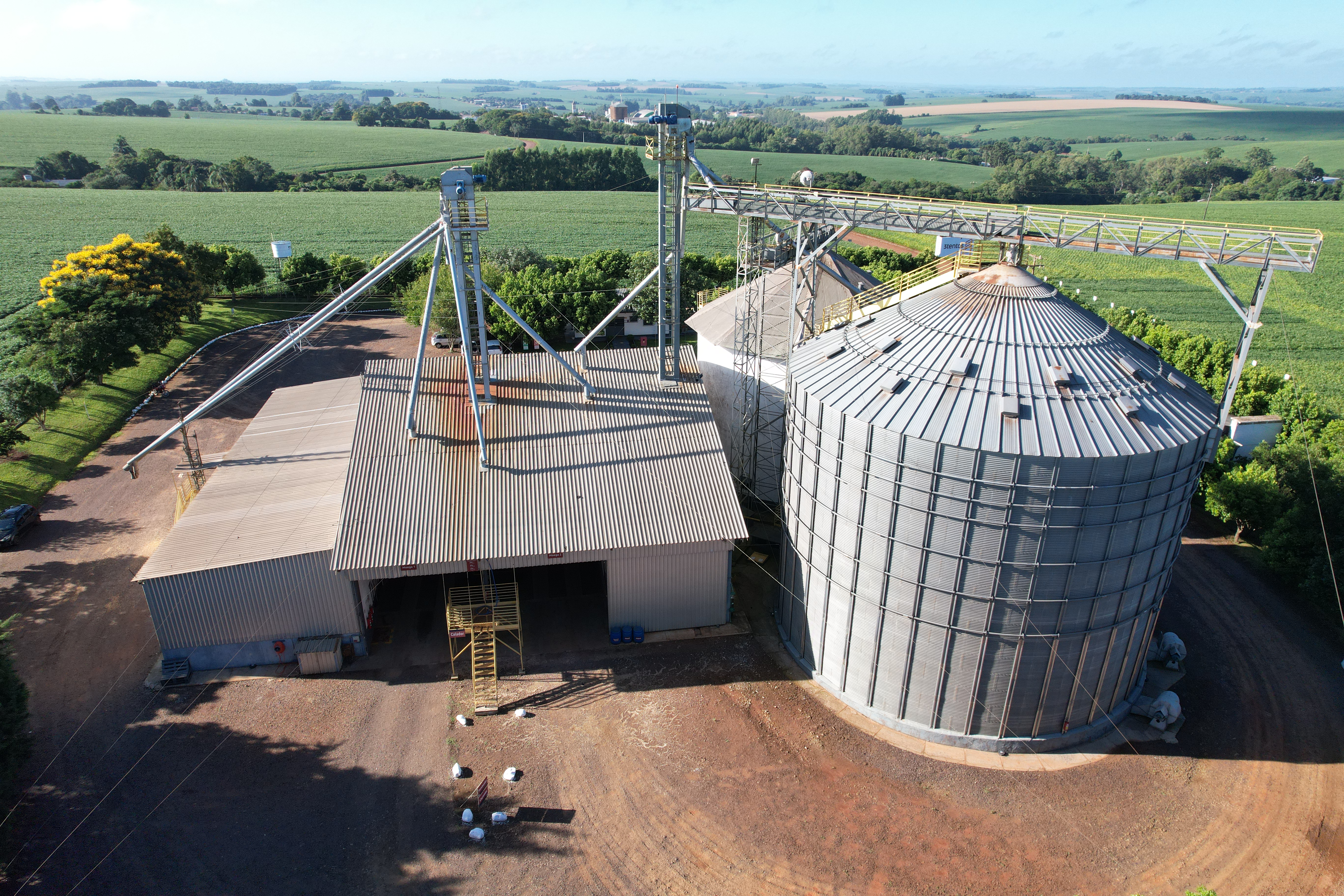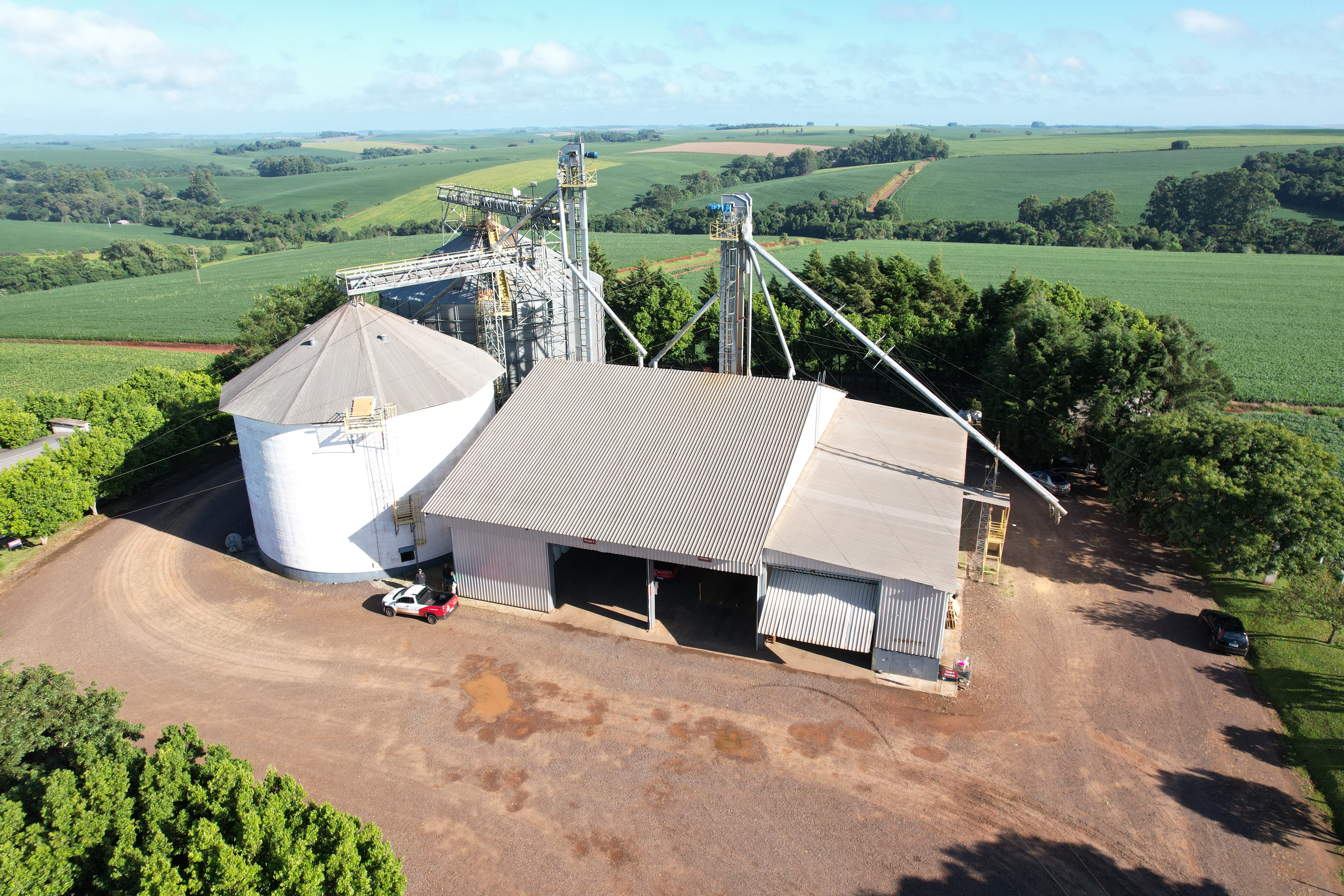 Execução de obra civil para implantação de unidade armazenadora de grãos, contemplando infraestrutura completa para recebimento, movimentação e armazenagem da produção agrícola.