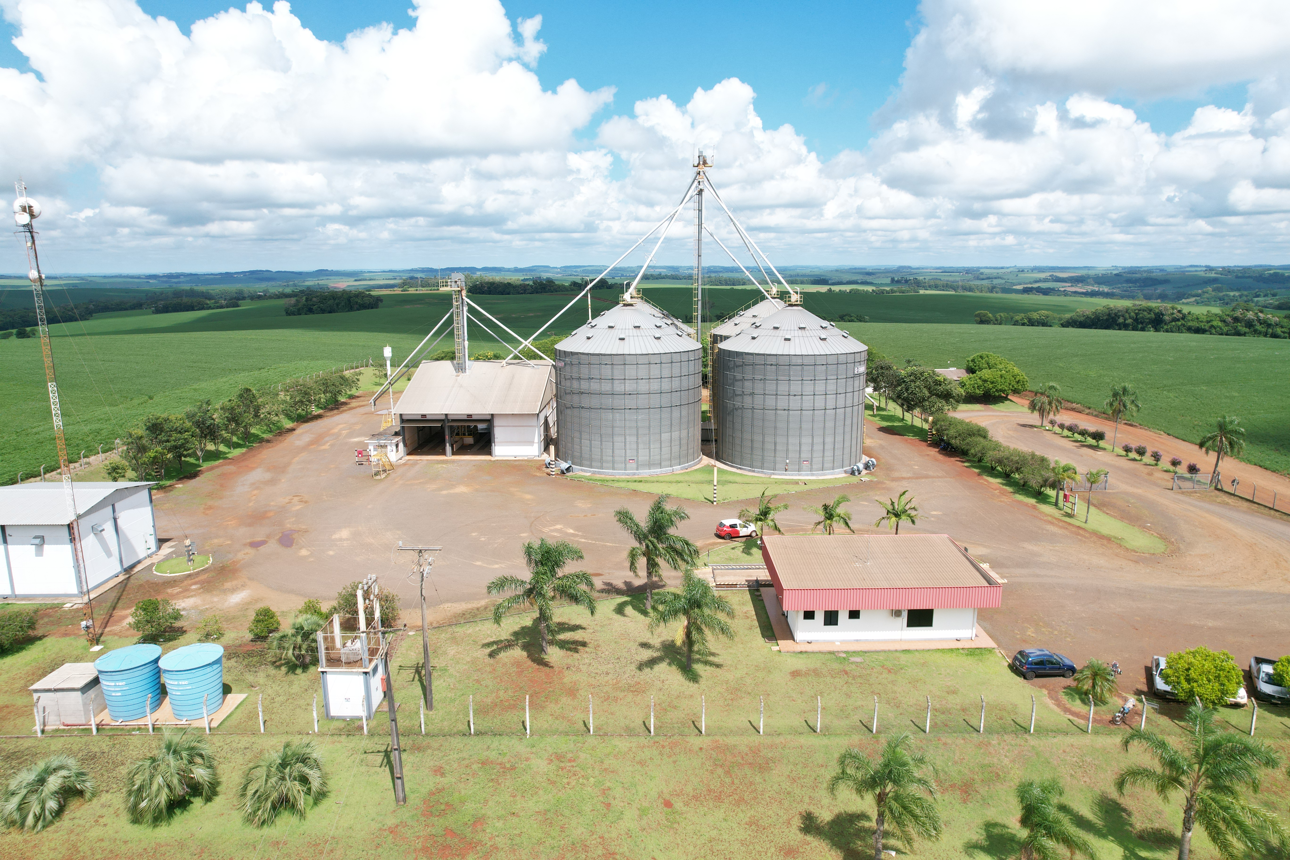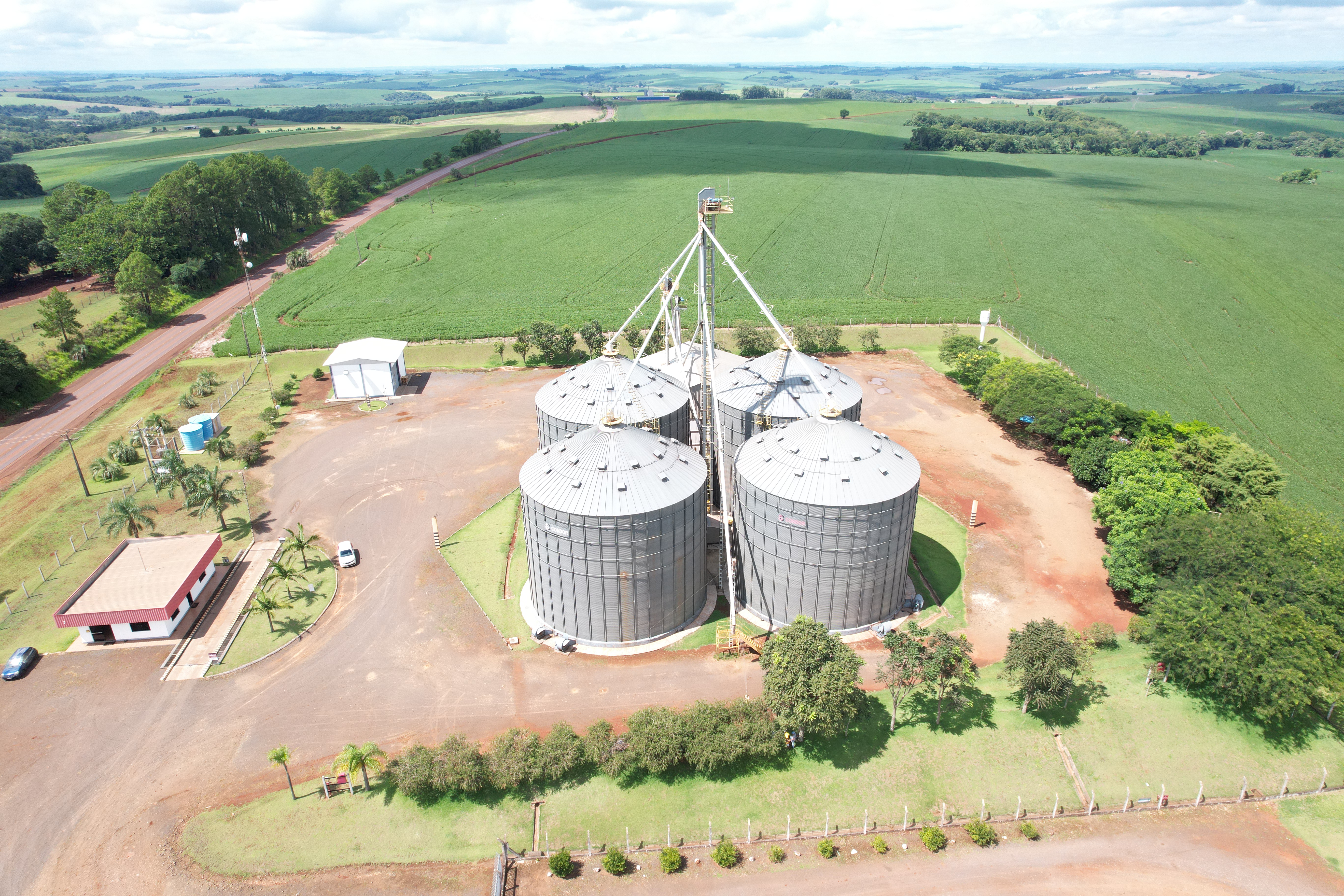 Execução de obra civil para implantação de unidade armazenadora de grãos, contemplando infraestrutura completa para recebimento, movimentação e armazenagem da produção agrícola.