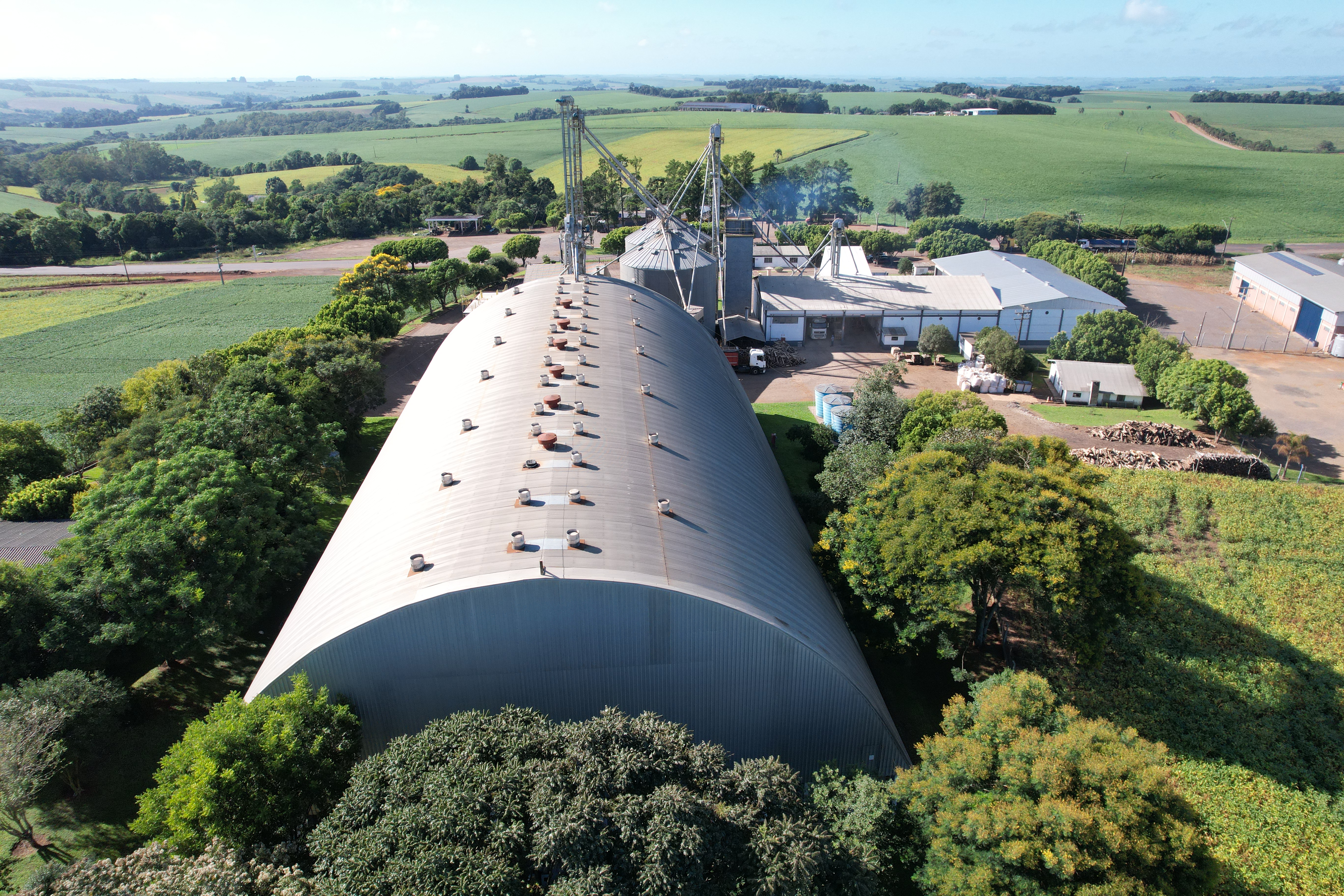 Execução de galpão com fundo cônico destinado à armazenagem de grãos, projetado para proporcionar escoamento eficiente do produto e maior agilidade nas operações de descarga.