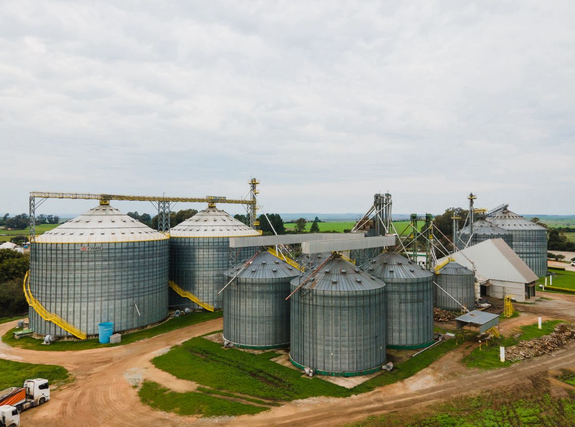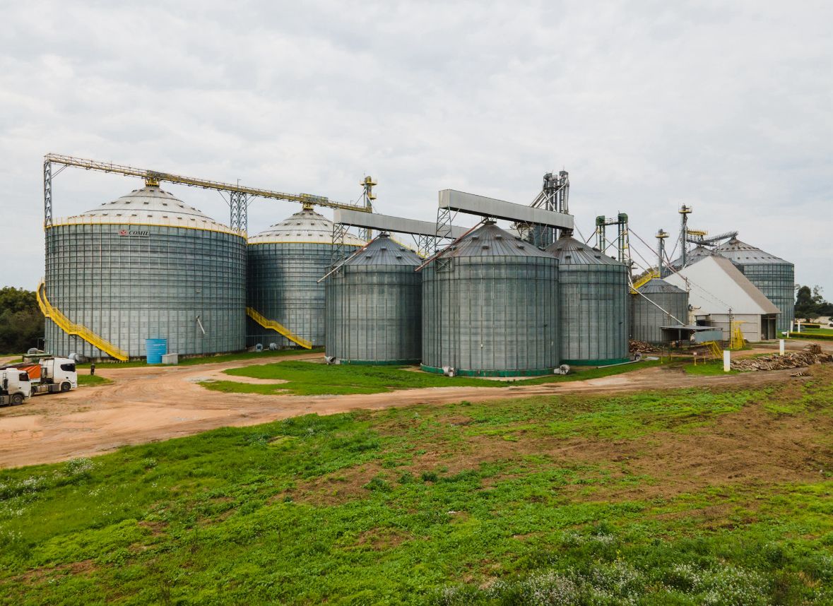 Execução de base de silo em concreto armado destinada à sustentação de estruturas metálicas para armazenagem de grãos. A obra contemplou preparação do terreno, execução de fundações e concretagem da base, dimensionada para suportar as elevadas cargas transmitidas pelo silo e pelo produto armazenado.
